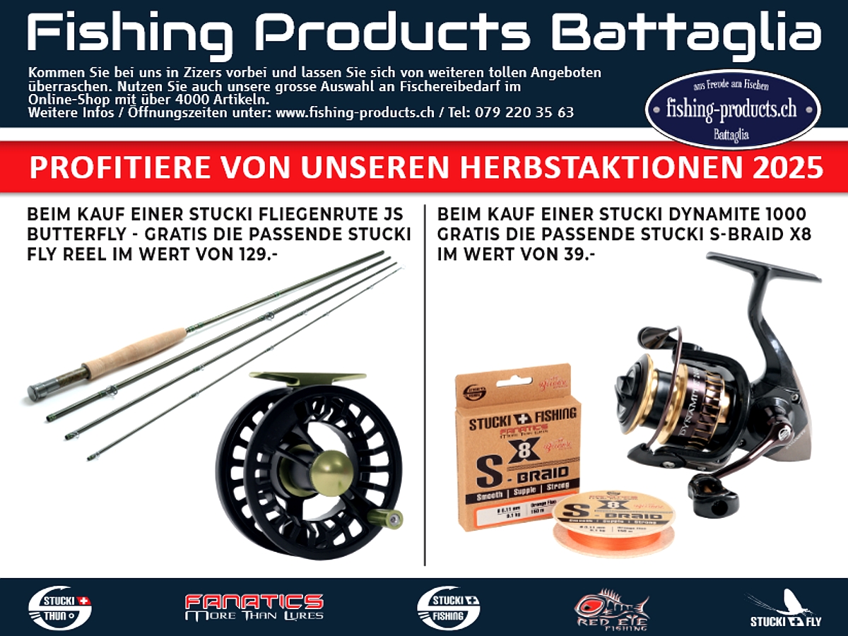 Sie erhalten auch alle Produkte aus dem Shop in unserem Fachgeschäft für die Fischerei an der Kantonsstrasse 71, 7205 Zizers.